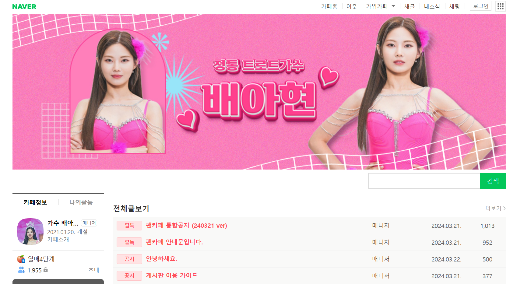 팬카페는 네이버 팬카페가 있으며 가입을 원하시는 분들은 아래에서 바로 확인하실수 있습니다.